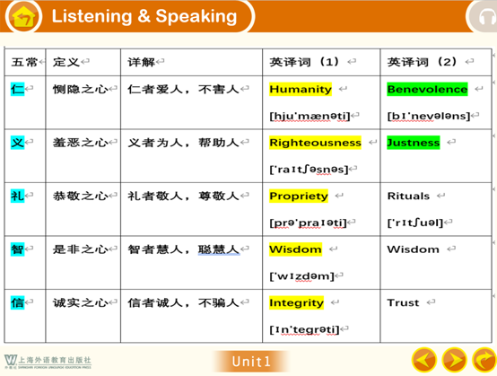 副院长刘芳老师从英语阅读文章中美国作家JayMcDaniel对儒家思想的尊崇和阐释讲起,引导学生全面了解儒家思想的起源、发展与核心要义,通过理解儒家“五常”原词的确切含义和区分多个译词之间的细微差异,选择最为贴切的译词表达“仁、义、礼、智、信”的概念。她要求学生结合当前我国同胞万众一心防控疫情的具体表现,思考“仁者爱人、义者为人、礼者敬人、智者慧人、信者诚人”的内涵和外延,并使用英语阅读文章中所学新词,撰文说明儒家思想对于阻断疫情传播的现实意义。她还因势利导,希望同学们疫情期间以仁义之心居家隔离,以恭敬之心礼遇他人,以是非之心远离谣言,以诚实之心自主学习。
