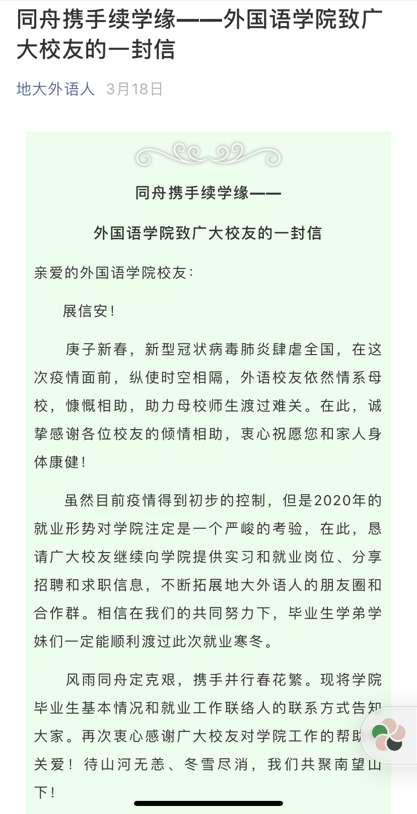 WilliamHill中文官方网站促进2020届毕业生充分就业工作方案        致校友的一封信
