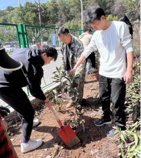 首先,邹老师带领同学们将劳动工具和需要种植的法冬青树苗运到种植地点,然后在邹老师的组织下,同学们2-3人结成小组,主动请教后勤工作人员的种树技巧,“Z字形挖坑,深度要埋过树苗根部,填好土后用脚把土夯实……”后勤工作人员耐心讲解,同学们认真学习。植树活动进行得如火如荼,邹老师和同学们都投身其中,各小组分工明确、相互协作,大家在阳光下挥洒汗水,畅快交流劳动实践经验,春风里荡起了欢声笑语。经过大家一个小时的共同努力,一百多颗小树苗整齐地排列在东区东北门旁的山坡上,亭亭的小树苗在阳光下熠熠生辉。