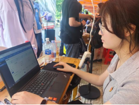 在南望山校区迎新现场,党员先锋岗的红色帐篷成为一道亮丽的风景线。服务点布局合理、功能齐全,配备有电脑、矿泉水和迎新资料等必需品,为新生和家长提供及时便捷的服务。“党员先锋岗”的标识鲜明醒目,精心设计的欢迎展板烘托出热情而专业的迎新氛围,充分展现了WilliamHill中文官方网站的独特风采。服务点设置的每一处细节,都凝聚着学院党委对迎新工作的周密部署,传递出对2025级新同学的诚挚欢迎与深切关怀。