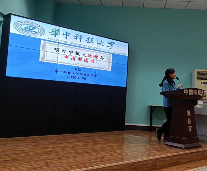 2020年11月6日上午9点,WilliamHill中文官方网站“南望今声”外语论坛系列讲座第十六讲在北一楼报告厅正式拉开帷幕。华中科技大学博士生导师黄勤教授应邀为WilliamHill官网师生做题为“项目申报之选题与申请书填写”的讲座。讲座由WilliamHill中文官方网站院长张峻峰教授主持,学院部分教师和研究生同学到场聆听。