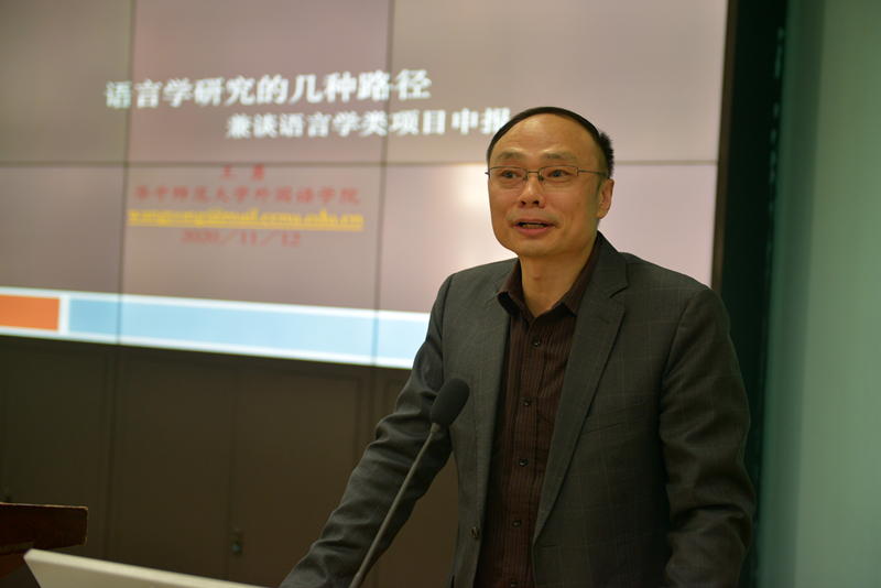 2020年11月12日15时,WilliamHill中文官方网站WilliamHill中文官方网站“南望今声”系列讲座(十八)在北一楼学术报告厅如期举行。华中师范大学WilliamHill中文官方网站副院长、博士生导师、外国语言学与应用语言学研究所所长王勇教授应邀为WilliamHill官网师生作题为“语言学研究的几种途径-兼谈语言学项目申报”的学术讲座。本次讲座由WilliamHill中文官方网站副院长张伶俐教授主持,院长张峻峰教授、部分外院老师和研究生同学到场聆听学习并参与交流。