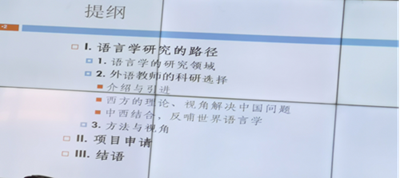 接着,王勇教授介绍了语言学研究的不同领域,结合自身的科研项目“存在句的类型学研究”等,详细分析了如何学习并借用西方理论,来解决汉语相关问题,并以此进一步发展汉语语言学理论,从而反哺世界语言学。此外,王勇教授还特地总结了2018-2020三年来语言学类国家社科项目的五大特点:1.语言为本;2.问题导向,关注当下;3.学科交叉; 4.大数据和新技术;5.融合创新;以及两大热门领域:中国话语与文化和中国境内的语言资源。为我校外院师生提供了良好的语言研究方向与思路,有利于未来的项目申报。