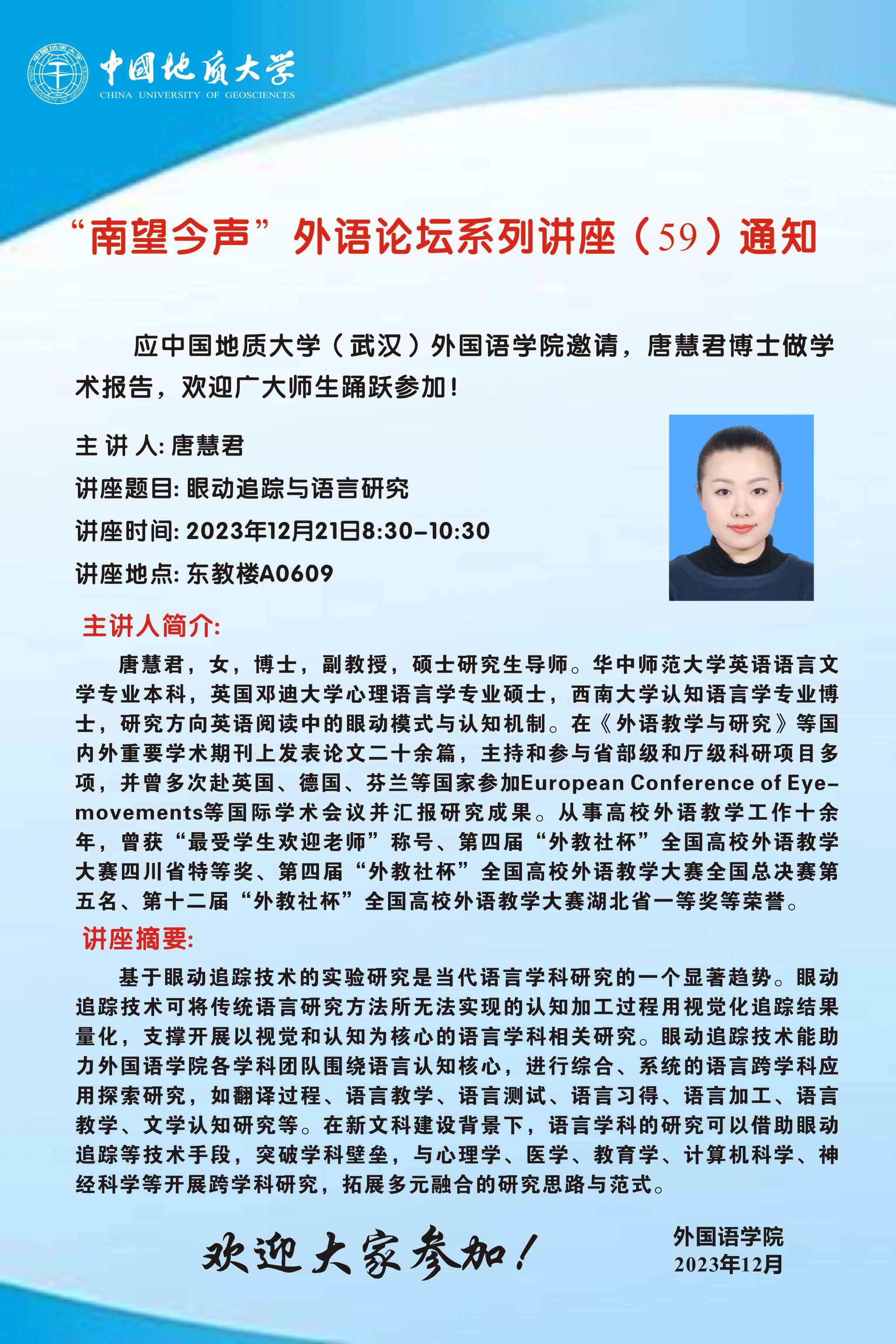 “南望今声”外语论坛系列讲座(59)通知