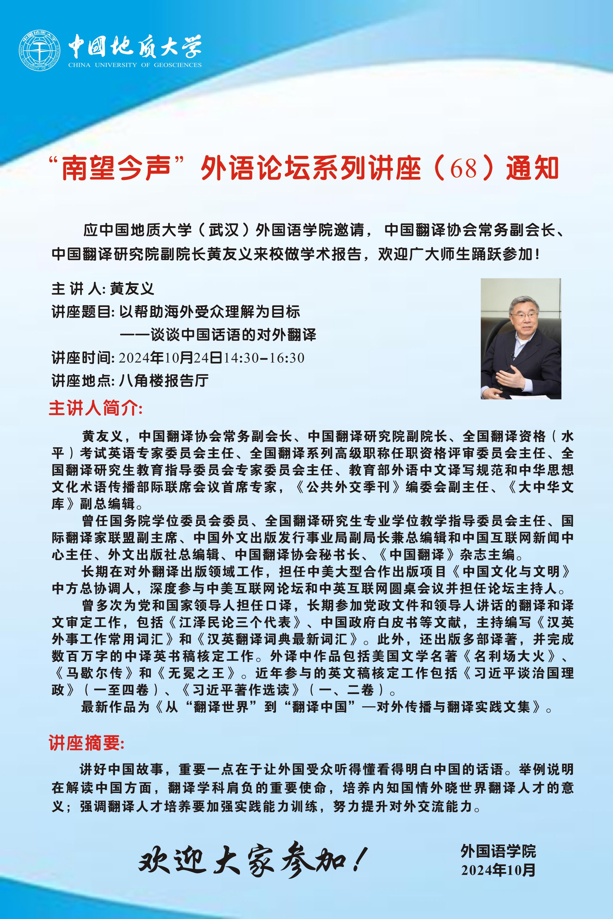 “南望今声”外语论坛系列讲座(68)通知
