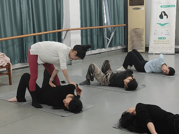 进入脊椎拉伸环节,老师深知同学们平日长时间伏案学习办公,脊椎容易出现酸痛不适的情况,便贴心地为大家详细讲解了背部、肩部、颈部等身体部位的拉伸动作,并亲自指导大家完成。同学们按照老师的指导专注于拉伸之中,感受肌肉慢慢得到放松,沉浸于身心舒缓的时刻。