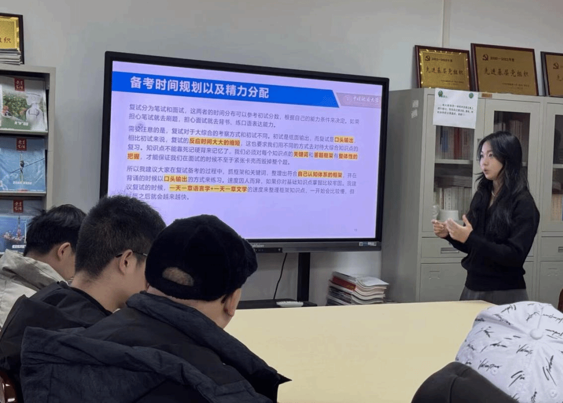 活动伊始,主持人介绍了本次分享会的目的,强调了扎实做好复试备考的重要性,然后邀请4位主讲人依次做经分享。