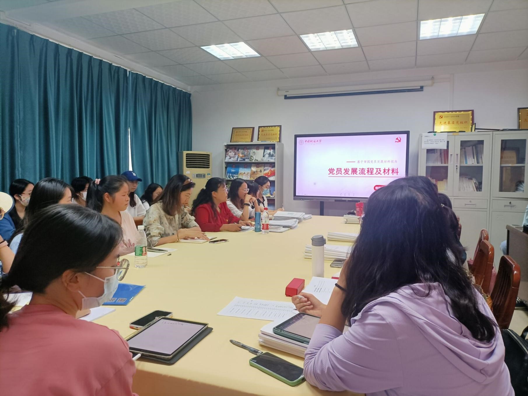 随后,于荣萍老师以审阅党员发展材料的视角,向在场支委们讲解党员发展流程及在发展过程中审查材料时应当注意的问题,主要从发展党员工作总体要求、发展党员工作基本程序、党员发展材料类型、发展党员材料审查重点关注问题这四个方面展开培训。