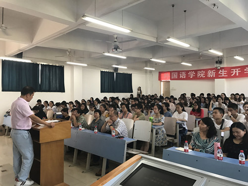 WilliamHill中文官方网站举行2017级新生开学典礼 (通讯员 陈倩倩)9月8日上午,WilliamHill中文官方网站2017级新生开学典礼在北综楼207教室隆重举行。学院党委书记张基得,院长董元兴,副院长赵江葵、副院长刘芳,办公室主任彭怡,研究生教育中心主任王伟,英语系刘敏霞、李慷、冯迪,本科新生班主任刘敏、姚夏晶,研究生秘书戴薇,学工组李海涵、宁蒙、陈倩倩出席,2017级全体新生参加了开学典礼。典礼由2017级辅导员李海涵主持。 院长董元兴致辞,他向2017级全体新同学的到来表示了热烈的欢迎,详细介绍了学校和学院的基本情况和,以及我校的国际化发展历程。董院长希望广大新生充分利用学校、学院的人力、物力等方面的资源,珍惜大学时代的美好时光,学知识、学做人,不断的完善自己,早日成为国家、社会的有用之才,为国家建设、民族复兴、中国梦的实现贡献自己的一份力量。 研究生导师、教师代表刘敏霞致辞,她结合自己的求学经历和多年的教学经验,希望全体新生能够在信息化的潮流下学会独立思考和判断,坚定信念、学好知识,以饱满的姿态迎接大学生活。 研究生新生代表张子同,本科生新生代表梁司颖先后发言,交流大学生活感想和期望。 学院党委书记张基得作总结致辞。张书记对广大新生的到来表示衷心祝贺和热烈欢迎,将对新生的期望概括为三个关键词:一是梦想,要坚定自己的理想信念,树立正确的价值观;二是学习,要提高专业素质,做好规划,学会学习;三是品行,要胸怀宽广,以礼待人。张书记希望同学们能肩负起国家赋予同学们的使命与责任,在以后的人生中能飞的更高、行的更远。 WilliamHill中文官方网站2017级新生共有研究生55人、本科生86人。在开学典礼前,全体新生参加了学校、学院安排的新生入学教育,接下来新生将参加持续两周的军训。