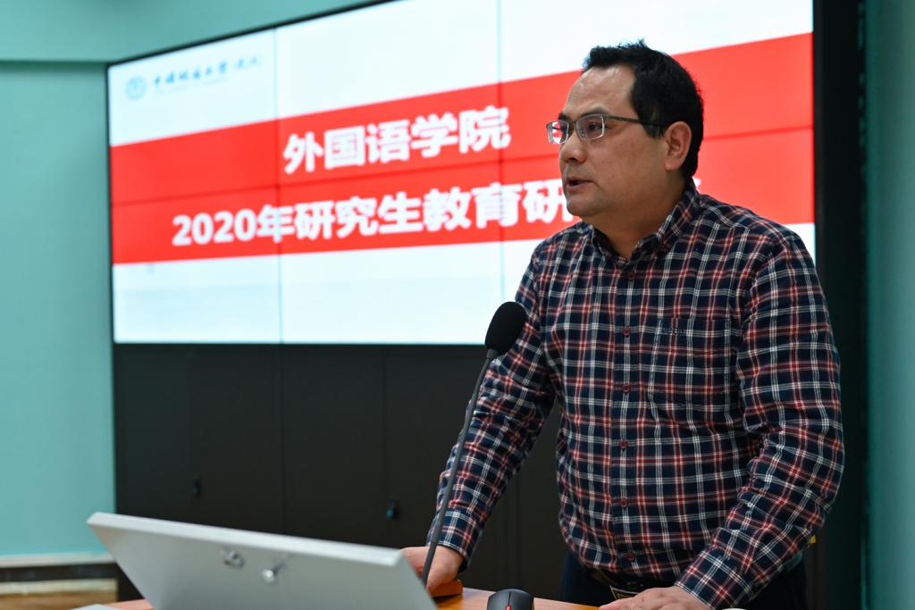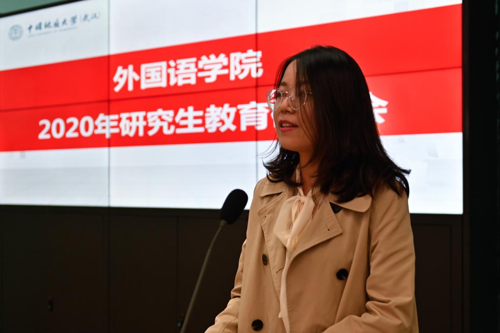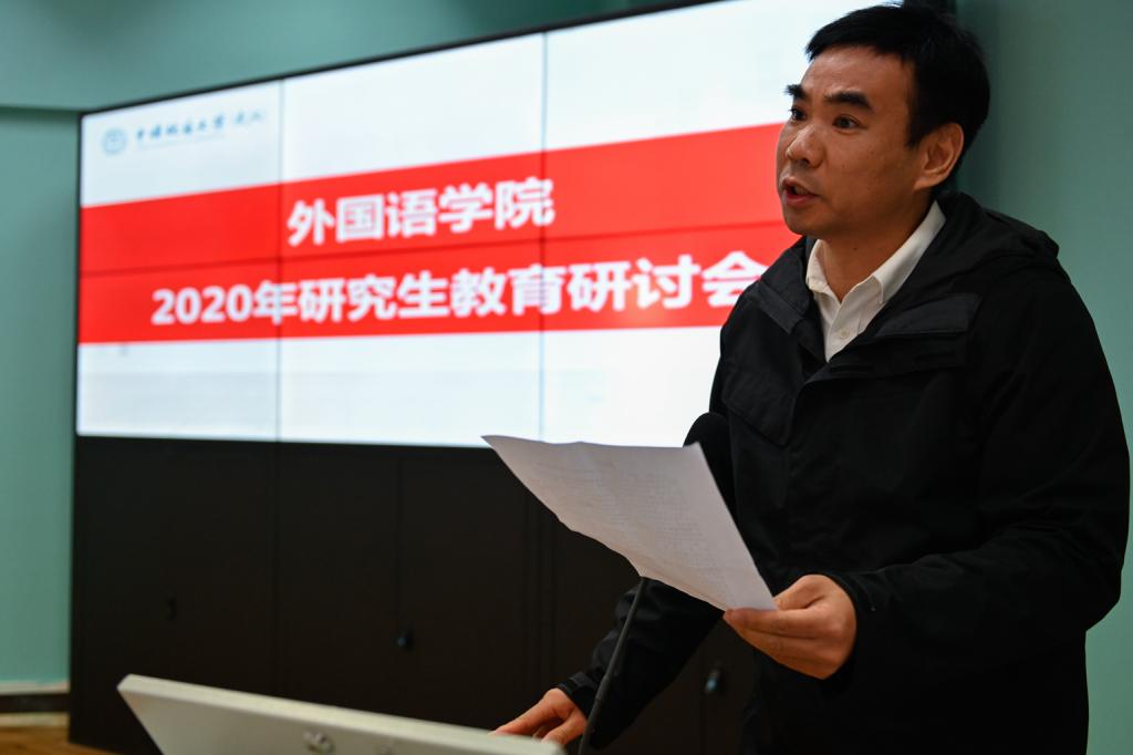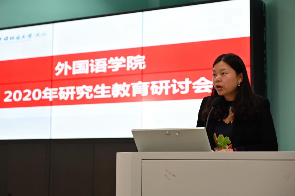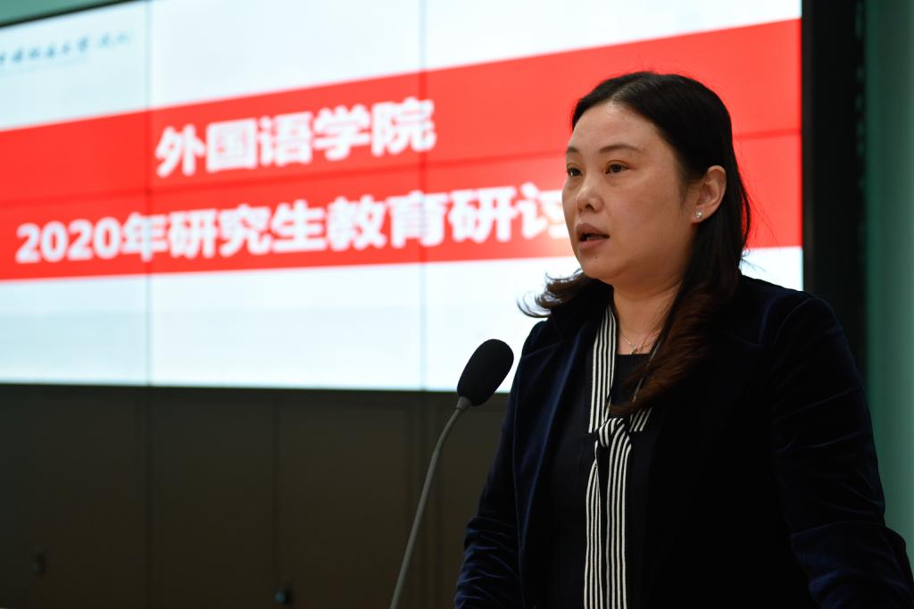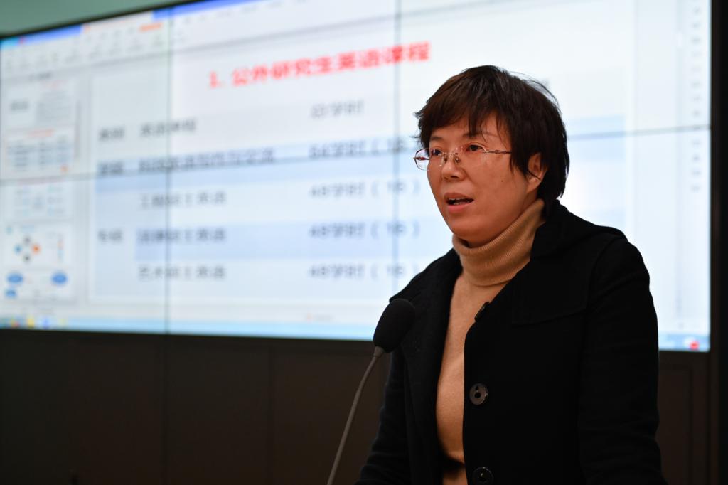 学院党政班子代表副院长刘芳以“公外研究生教学的现状与困境”为题,阐述了非英语专业研究生教学现状与发展瓶颈,希望学校和学院能够给予大学英语部进人指标,建立专门的研究生教研室,将公外研究生教学课时计入聘期考核等。