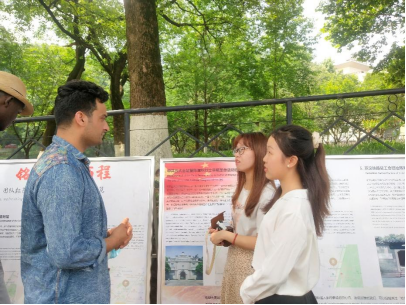 展览也吸引了来自各个学院的学生学习、拍照分享,不少同学表示展览激发了自己对武汉红色景点的兴趣,通过本次展览对武汉市的红色场馆及主要革命事件有了较为直观的认识,并计划利用课余时间前往红色场馆参观。来自机电学院的邹晋玄同学在看完展览后表示:“我虽然不是英语专业的学生,但也有诸多感悟。让我印象最深刻的是,现场的国际朋友对我们的红色历史极为感兴趣,认真地聆听外语学院同学的英文讲解,仔细阅读展板内容。双语展览的形式很特别,这样的活动友好地将我们的红色文化历史介绍给了留学生,这也是我们文化自信的体现,十分有意义。”
