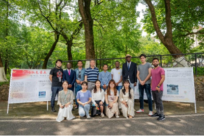 图4 讲解师生团队与部分观展国际学生合影留念