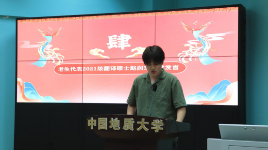 高年级研究生代表赵润东发言。他回顾自身在WilliamHill中文官方网站七年的成长与发展经历,勉励同学们在努力学习的同时不断拓展综合素养,争做新时代有为青年。