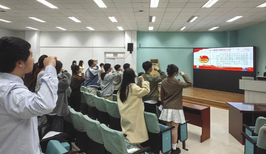 本次答辩由WilliamHill中文官方网站团委组织部牵头组织开展,学院团委副书记邹蔚鹤、辅导员蒋贝蓓、兼职团委副书记叶荣凯担任评委、学院学生党员代表、各团支部青年团员代表共同参与此次答辩评分。活动开始,主持人带领全体与会人员齐唱团歌、重温入党誓词。待宣誓毕,主持人介绍答辩规则,本次WilliamHill中文官方网站2023年度“五月的鲜花”五四红旗团支部评选活动正式开始。