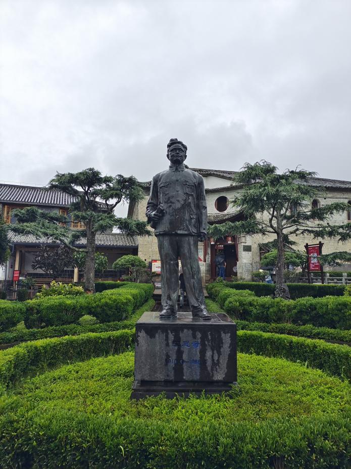 第二站,实践团成员沿着习近平总书记的足迹,踏入腾冲和顺古镇。在这堂别开生面的思政课堂上,实践团一行不仅领略到了和顺古镇古朴典雅的建筑风貌、恬美的特色水乡景致,更生动感受到了和顺古镇深厚的历史文化底蕴和先贤们勇于探索、敢于担当的精神风貌。随着讲解员的步伐,实践团成员们首先来到了和顺图书馆——这座由当地华侨和乡绅集资兴建,被誉为“中国乡村第一图书馆”的地方。在这里,大家不仅被馆内丰富的藏书和典雅的环境所震撼,更被其创办者“启迪民智,振兴中华”的初心深深打动。图书馆不仅是知识的海洋,更是思想交流的圣地,它见证了和顺人对于教育、对于真理的不懈追求,以及对社会责任的深刻理解和积极践行。随后,实践团成员们走访了古镇中的艾思奇故居。艾思奇,作为中国著名的哲学家、马克思主义理论家,他的生平事迹和学术贡献成为了本次思政课堂的又一重要内容。在故居内,通过一件件展品、一幅幅照片、一段段文字,实践团成员们仿佛穿越时空,与这位伟大的思想家进行了一次心灵的对话。艾思奇同志将马克思主义哲学中国化、大众化的努力,以及他对于真理的执着追求、对于国家和民族命运的深切关怀,深深触动了每一位成员的心弦。大家深刻体会到,作为新时代的青年,应当时刻保持对真理的渴望,勇于担当起时代赋予的使命和责任。实践团成员陈晓凡表示:今后要不断提升自己的综合素质和能力水平,为实现中华民族伟大复兴的中国梦贡献自己的力量!