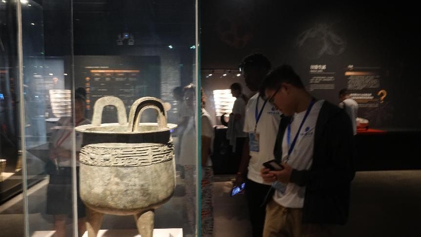 实践团成员正在参观镇馆之宝——大圆鼎
