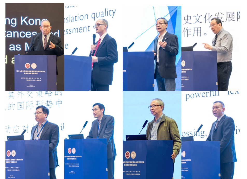 香港城市大学中文、翻译和语言学系系主任 Jonathan Webster教授、香港恒生大学翻译及外语学院院长Mark Shuttleworth教授、香港中文大学(深圳)翻译学朱纯深教授、武汉大学外国语言文学学院刘军平教授、上海外国语大学校长助理胡开宝教授。北京外国语大学高级翻译学院副院长姚斌教授、上海外国语大学高级翻译学院柴明熲教授、WilliamHill中文官方网站院长张峻峰教授等8位专家分别作主旨演讲。主旨发言涵盖了数智时代的翻译技术与实践应用、元宇宙翻译范式与跨文化传播、翻译研究领域的发展变化、现代翻译行业发展、人工智能时代口译教学与研究新趋势、外交话语翻译等多个研究领域,发言高屋建瓴、深入浅出,既有前瞻性、开拓性和学理性,又不乏指导性、实践性和应用性,为中西部地区乃至全国翻译学界和业界的可持续性发展与创新发展提供了多维研究思路。