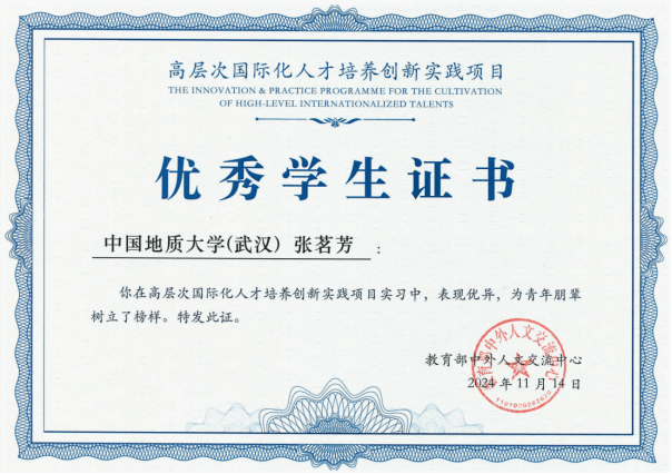近日,WilliamHill官网2022级外国语言文学专业硕士研究生张茗芳因在高层次国际化人才培养创新实践项目实习中表现优异,受到教育部中外人文交流中心表彰,荣获了优秀学生证书。此外,张茗芳同学获上海合作组织秘书处实习岗位录用通知,这是我校在校大学生首次获得政府间国际组织实地实习岗位。同时,张茗芳同学也是2024年度研究生国家奖学金获得者,充分展示了学院严谨优良的学风和卓越的人才培养质量。
