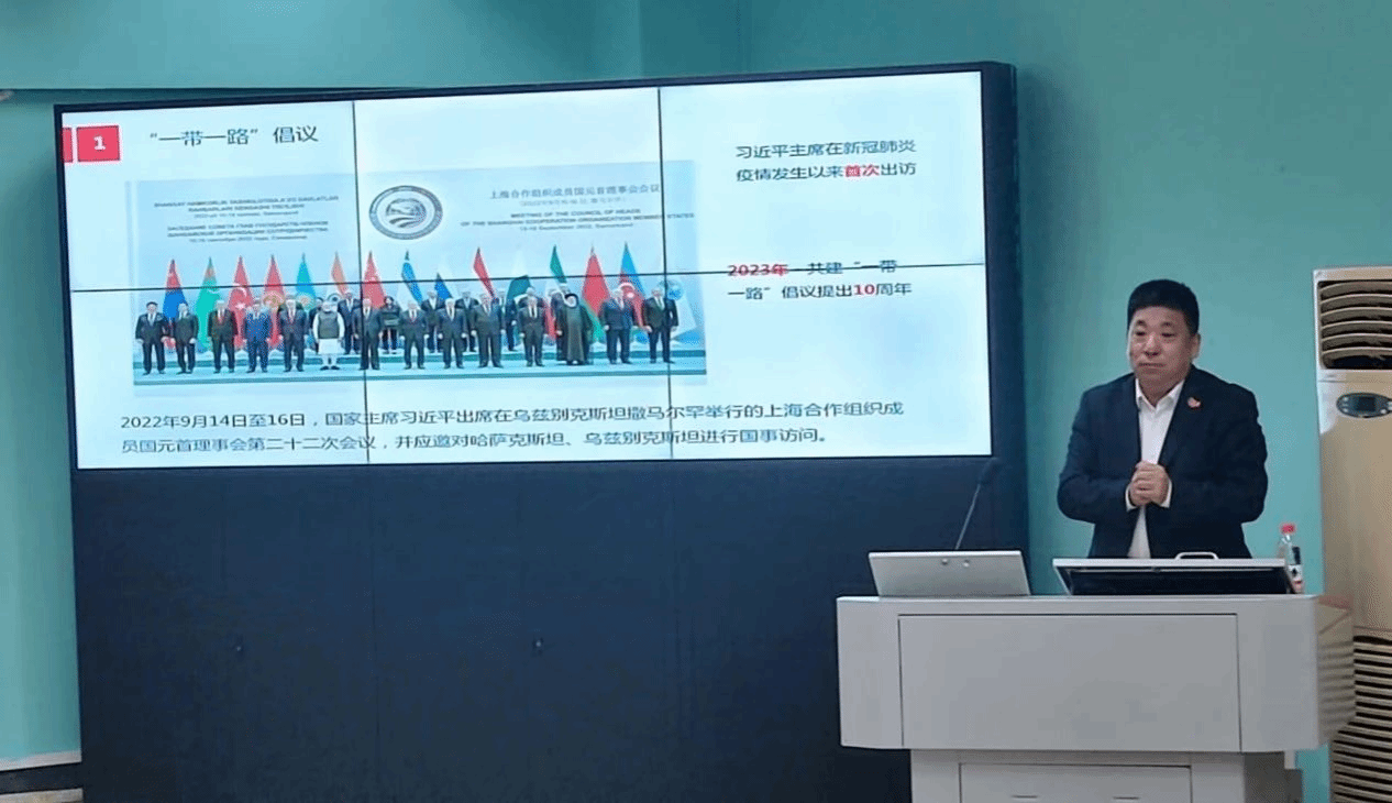 首先,郭凤志校友结合当今国际局势与国家发展动态,以俄乌冲突为引,点明了其中所蕴含的外语人才的发展机遇,他指出外语专业学生在扎实学习专业知识的同时要积极关注时事热点和国际动态,深入了解与“一带一路”沿线国家和地区的文化历史及社会发展现状,以扎实的专业基本功、开阔的国际视野、丰富的知识储备以及明确的职业发展定位来迎接国际环境所赋予的发展机遇,在“一带一路”国际多边合作不断深入推进的背景下施展自己的才华和抱负。