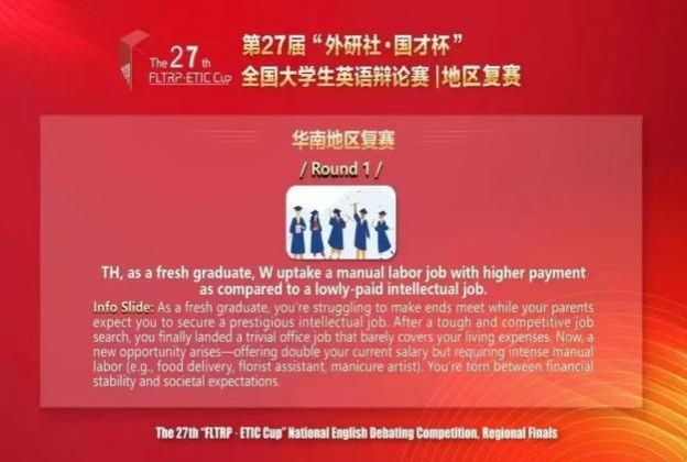 (通讯员:赵妍)4月12—13日,第27届“外研社·国才杯”全国大学生英语辩论赛华南赛区复赛圆满落幕。本届赛事由北京外国语大学等权威机构联合主办,采用英国议会制(BP赛制),吸引了来自全国各地的120余所高校140多支队伍云端激辩。