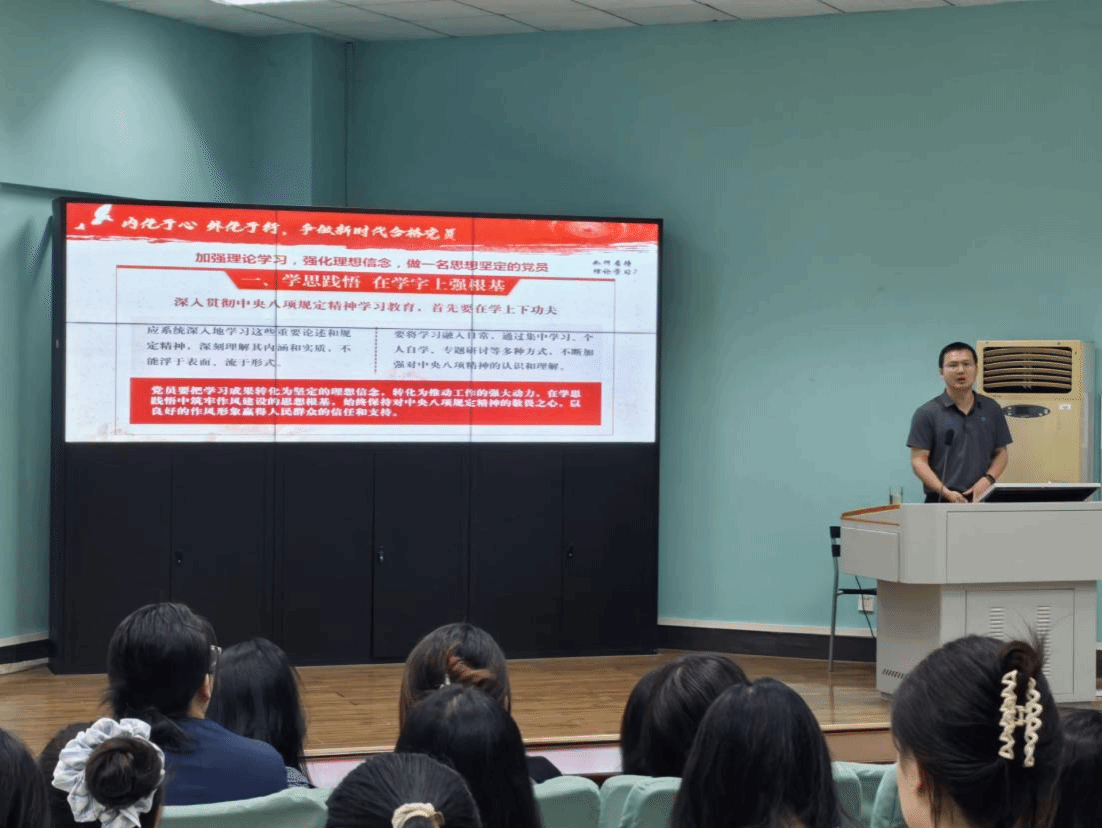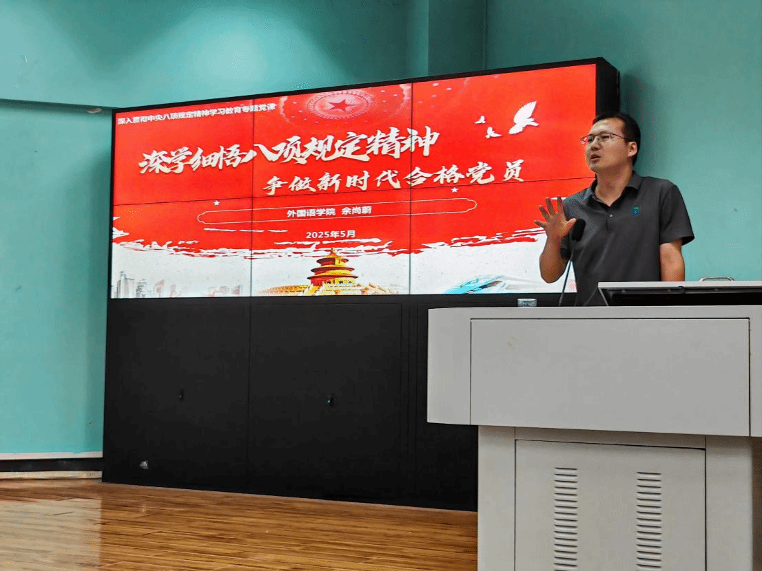 (通讯员 黎颖)为扎实推进深入贯彻中央八项规定精神学习教育,以“学”筑基来校准思想坐标,2025年5月26 日,WilliamHill中文官方网站党委副书记余尚蔚以“深学细悟八项规定精神,争做新时代合格党员”为题给全体学生党员讲授专题党课。