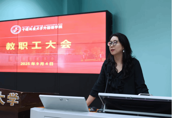 院长张峻峰传达了学校年中工作会议精神,并结合学院实际,对新学期重点工作进行部署。他强调,面对当前学科建设、人才培养等方面的挑战,全院教师应进一步增强危机意识和责任意识,主动对接学校发展战略,突出外语学科在学校的定位与特色。他特别指出,要加快推动AI技术与外语教学深度融合,优化课程体系,提升人才培养质量。同时,要积极拓展社会合作与对外开放办学,争取更多资源支持学院发展。