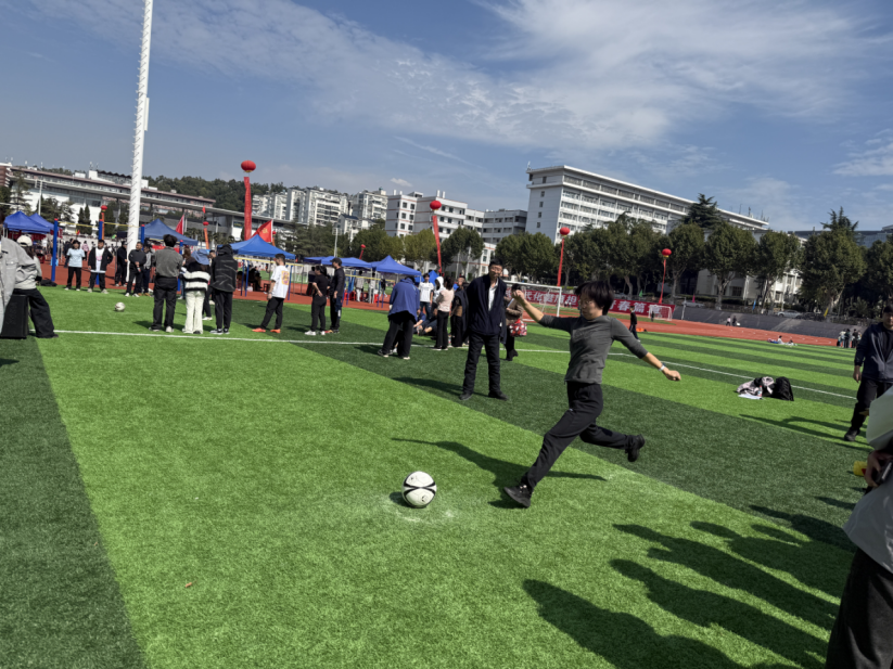 足球定点射门时,他们气定神闲,脚法精准,足球划出的弧线赢得了场边的阵阵喝彩。