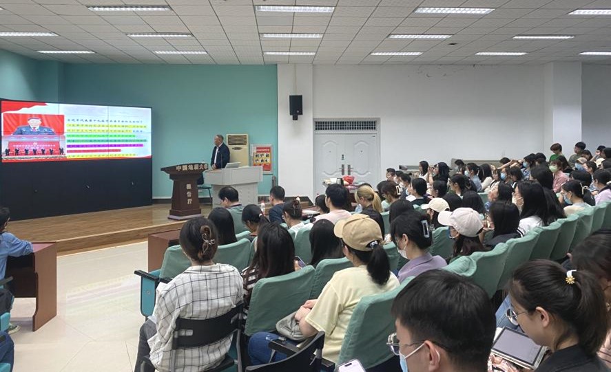 丁振国教授以《奋进新征程,创造新伟业——学习贯彻党的二十大精神》为题讲授党课。他带领大家回顾了党的二十大概况,重点讲述了党的二十大的重要意义、主要精神,同时引导大家用实际行动积极践行二十大精神,最后结合习近平总书记对新时代青年的寄语和联合国科教文组织界定的大学生的主要任务,针对WilliamHill中文官方网站学生专业特点提出学习和成长建议,激励大家勇敢面对困难和挑战,为实现中华民族伟大复兴而踔厉奋发,笃行不怠。讲解过程中,他结合“四史”、国情和自身经历,旁征博引,深入浅出,还与同学们进行问题抢答互动,为正确回答问题的同学送上了自己精心准备的奖品。