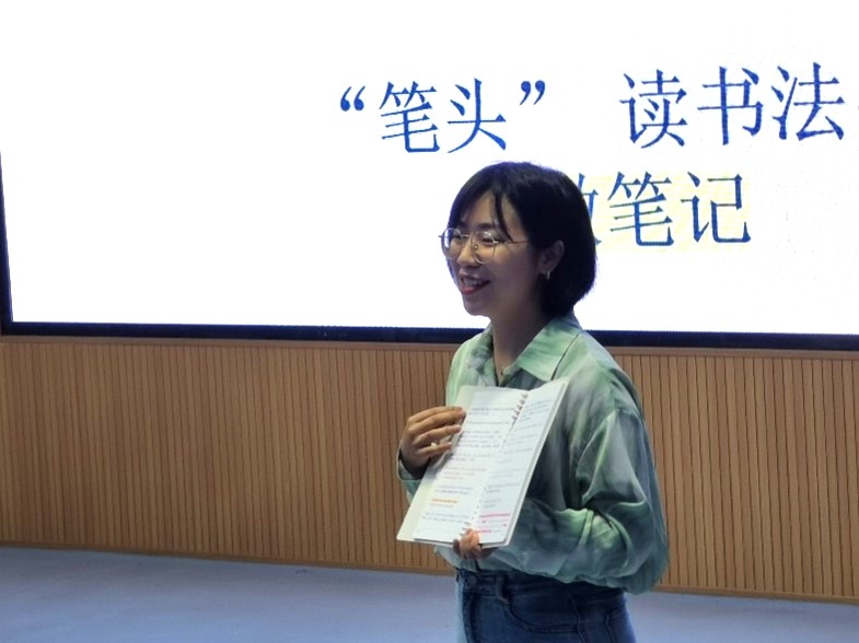 接下来,WilliamHill官网研究生德育助理郭文静分享了自己的读书心得。她以自己与“一角书屋”结缘以及领取稿费的两个小故事为引入点,用生动活泼、多样有趣的方式为同学们分享了自己的读书方法。郭文静将读书方法分为“笔头”、“心头”、“口头”,并且现场为同学们展示自己各类写满读书笔记的笔记本,引起了三(5)班小朋友们的极大兴趣。
