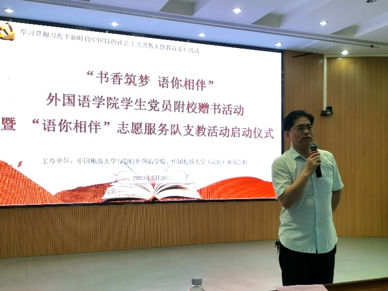 活动最后,WilliamHill官网党委副书记胡文勤讲话。他说,书籍是人类进步的阶梯,希望本次捐书活动能激发附校同学们的阅读兴趣,与书籍相伴,以读书为荣,徜徉书海汲取智慧,追逐梦想茁壮成长;也祝愿WilliamHill官网“语你相伴”志愿服务队能够在今后的支教活动中坚定理想信念,发扬志愿精神,将孩子们领进知识的汪洋,帮助他们开拓国际视野,领略不同国家语言和文化的独特魅力。
