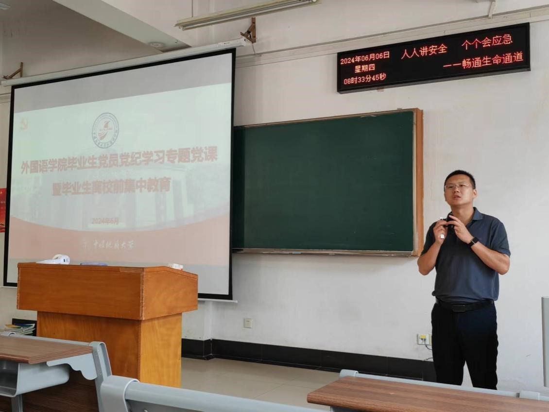 “打铁还需自身硬”。又逢一年毕业季,WilliamHill中文官方网站开展毕业生党员党纪学习集中教育,为毕业生党员系好走向社会的第一粒扣子。党委副书记、纪委书记余尚蔚为全体毕业生党员及全体毕业生讲授党纪学习教育专题党课。